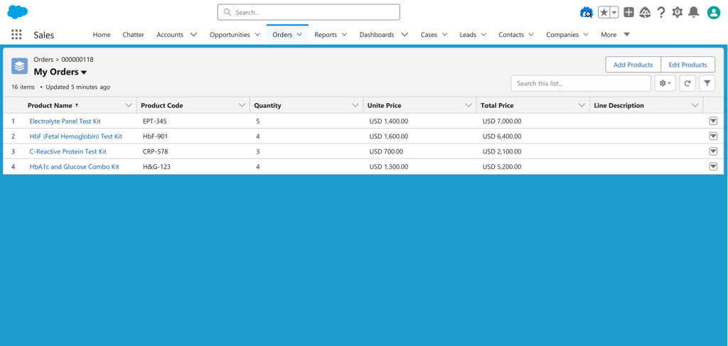 3. Once verified, the order details are stored in the Salesforce Order Details object.