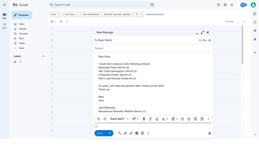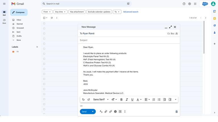 1. The user writes an email to input order details.
