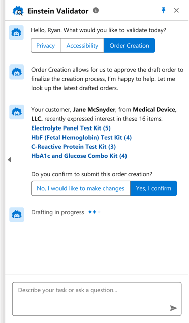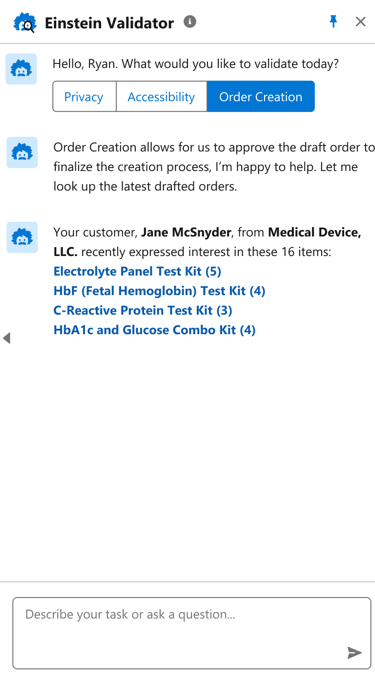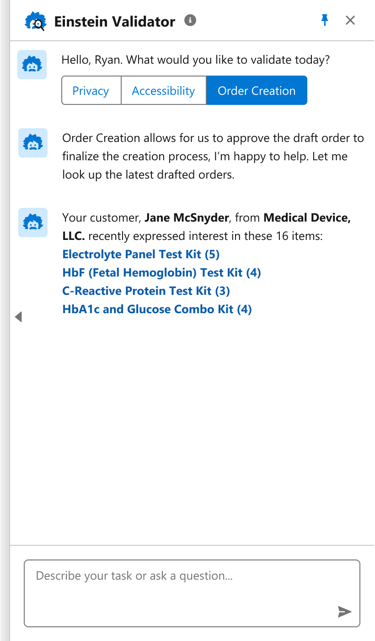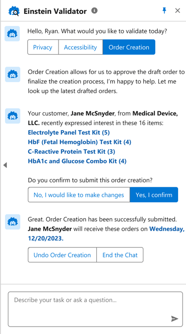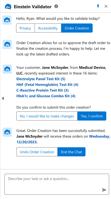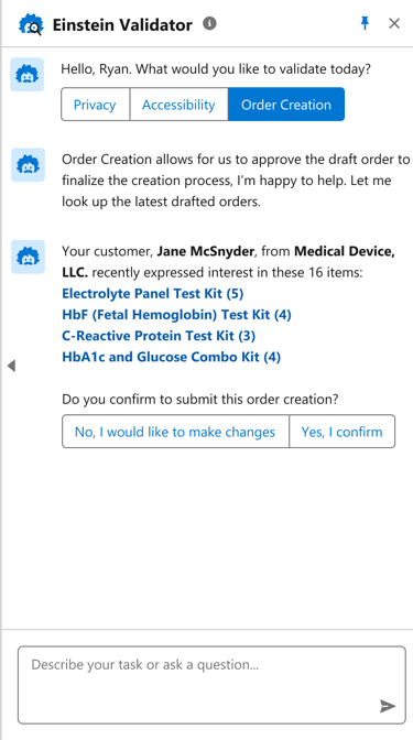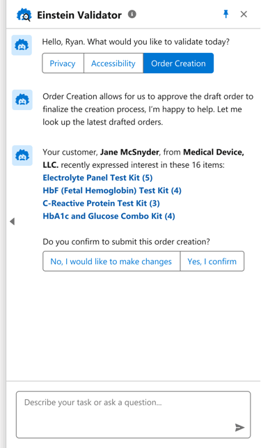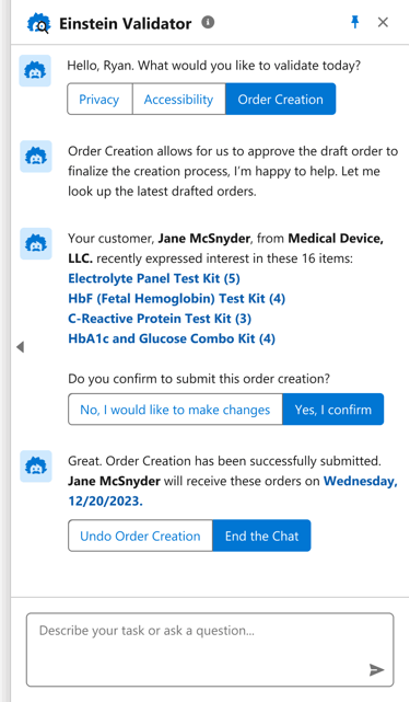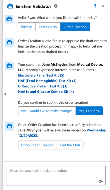 2. The seller can then confirm the orders through the Einstein Validator β an AI assistant.