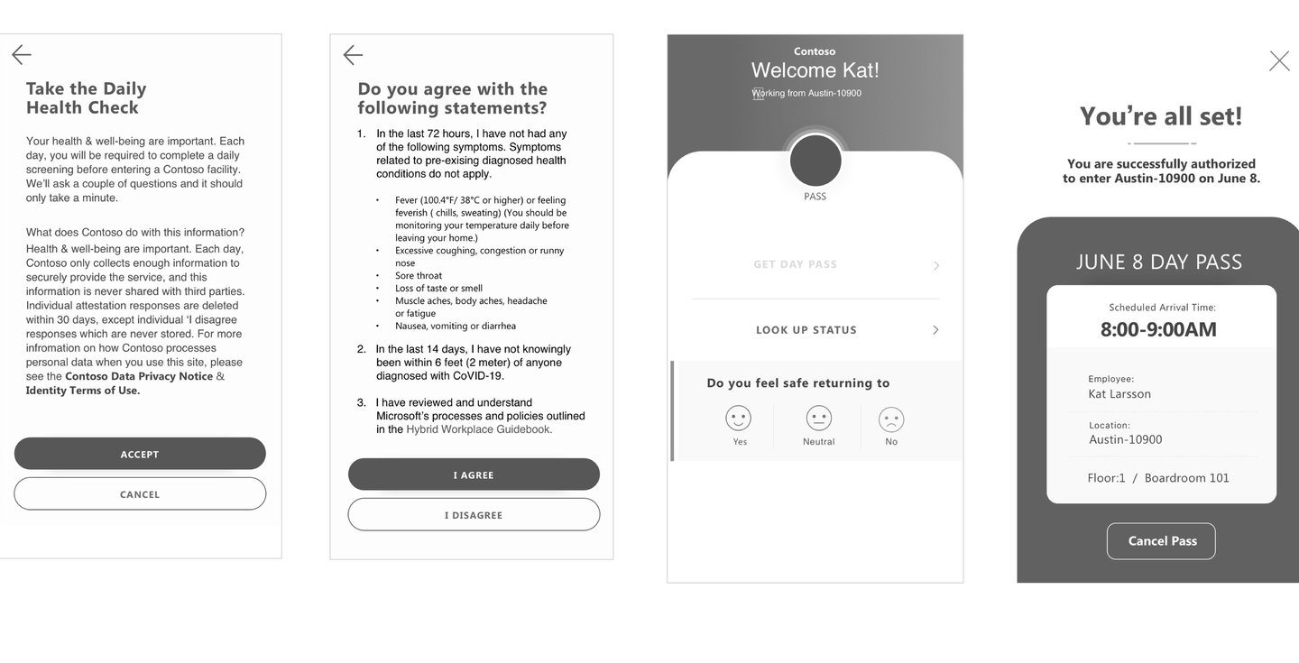 Microsoft wanted us to create an app for employees who were trying to return to the office during the pandemic. At that time, there was no current safe solution for employees attempting to resume office work. The pandemic was something we had never experienced in our lifetime. The suggested app solution needed to be generic, direct, and simple so that anyone could easily use it.
