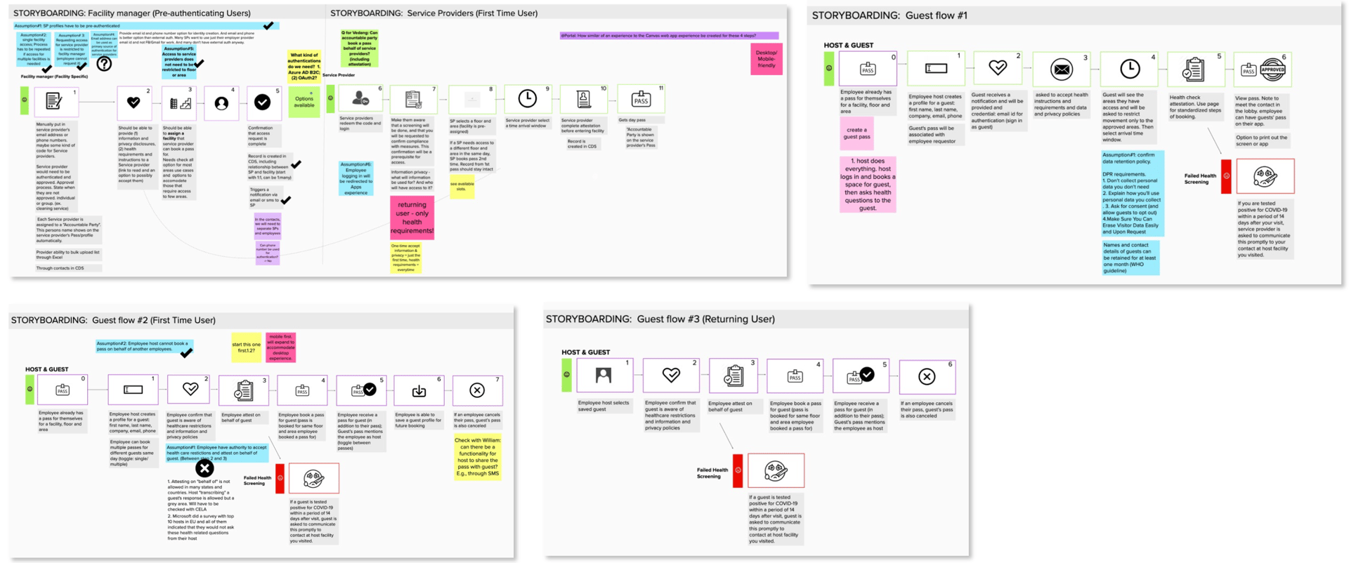 First, we used Mural boards to collaborate with the client and develop user flows for different personas. We created templates for these flows and meticulously reviewed each step of the journey for various users, both on the happy path and on the unhappy path. We also explored current pain points and extracted potential opportunities.